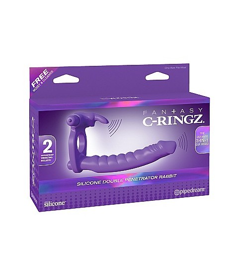 Cockring sensatie en genieten van de sensatie van dubbele penetratie met de Silicone Double Penetrator Rabbit! De dubbele penetrator is voorzien van een geribbelde siliconen dildo voor extra plezier!