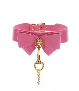 Deze prachtige Roze Halsband van Taboom heeft een strik en elegante, gouden details. De halsband gemaakt van zijdezacht, veganistisch PU leer in een zachte, roze kleur. De clips en ringen bieden verschillende mogelijkheden om mee te spelen. Geef de controle aan uw dominante partner door middel van de afneembare lijn. Meng stijl met plezier en verken de wereld van bondage, óf draag hem als een modieus statement. Voeg een beetje schattigheid en sensualiteit toe aan uw bondage collectie. Combineer deze geweldige halsband met andere roze bondageproducten van Taboom, zoals enkelboeien, handboeien of een prachtig bondageharnas!