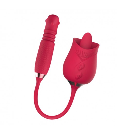 De Aurora is een zeer speciaal speeltje met een prachtige look. 'Aurora', je hoort het denk ik al.. De roos. Maar niet zomaar een roos. Deze doet je geen pijn maar geeft je alleen maar plezier. Dankzij zijn tong wordt jouw clitoris door middel van 10 heerlijke standjes gestimuleerd. Maar er zit een staartje aan.. Letterlijk! Aan het andere uiteinden zit een prachtige stimulator voor inwendige stimulatie. Deze vibreert niet alleen maar gaat ook dankzij de krachtige pulsaties, op en neer voor extra fijn penetratie gevoel.