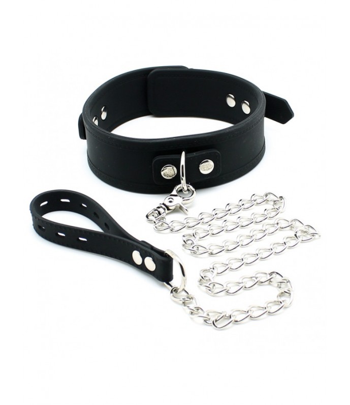 Dit is een prachtige Siliconen Halsband met Riem van Rimba. Rimba levert altijd top kwaliteit, dus dit product zal u niet teleurstellen. Een halsband is een echte klassieker voor bondage spellen; al helemaal als er een riem bij wordt geleverd! De riem die hierbij zit eindigt met een eenvoudige, siliconen lus om vast te houden en is te bevestigen aan de D-ring op de halsband door middel van een kleine karabijnhaak. De halsband is verstelbaar met een gespsluiting.