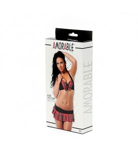Spannend schooluniform set in twee delen een rokje met een bijpassend topje. Het topje heeft een veter sluiting voor. Dit setje is verkrijgbaar in 3 maten.